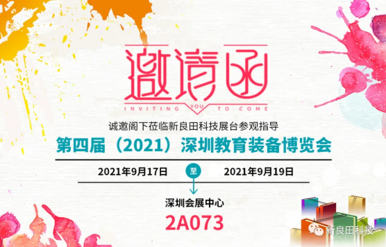 第四屆(2021)深圳教育裝備博覽會將于2021年9月17日--19日在深圳會展中心(福田區福華三路111號)隆重舉行,屆時恭請光臨我司展位:2號館,展位號A073。
