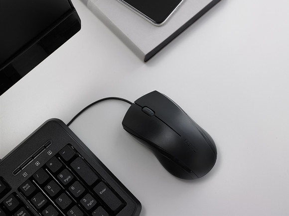 NX1720搭配的鼠標也非常用心,采用左右對稱的人體工程學設計,上蓋曲線精心勾勒以貼合手掌,帶來飽滿的握感。鼠標上蓋采用高品質ABS材質并采用類夫磨砂工藝,手感舒適,質感細膩,讓您握持鼠標時更加舒適。