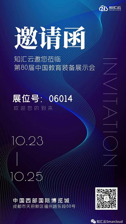 由中國教育裝備行業協會主辦,四川省教育廳和成都市人民政府承辦的“第80屆中國教育裝備展示會”將于2021年10月23日至25日在四川成都隆重舉行。上海知匯云信息技術股份有限公司應邀參會,特盛情邀請各位嘉賓蒞臨知匯云展示館(展位號:06014)參觀指導。