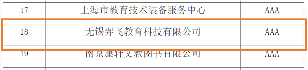 喜訊!羿飛教育獲得教育裝備行業(yè)AAA企業(yè)信用等級!