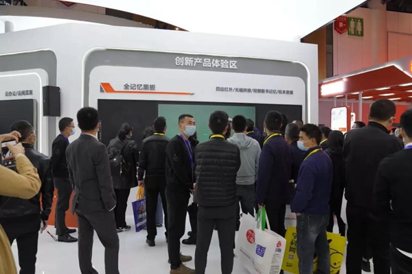 歐帝也帶來了令人耳目一新的新一代的四邊紅外記憶黑板,其粉筆板書的雙屏顯示功能和記憶云存儲功能令現場的老師感到驚喜。在傳統課堂中,由于黑板尺寸的限制,老師在板書書寫時,在中間位置寫滿后,會自然的在黑板的左右兩側書寫,而學生則由于座位的角度問題,看不清兩側的板書,以至于不能及時的抄寫板書。這一現象,幾乎是所有經歷過傳統黑板教育師生的共同記憶。