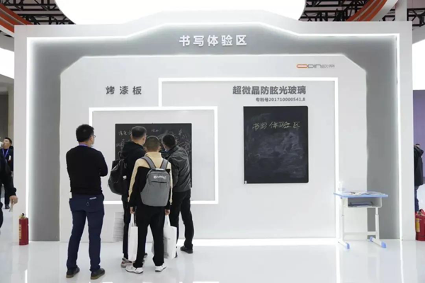 在現場,書寫體驗區成為歐帝展區的一道風景,為觀眾帶來了更真實具體的體驗。為了確保流暢的書寫感受和耐用性,歐帝科技智慧黑板采用自主研發核心技術“超微晶防眩光書寫玻璃”特殊材料,普通粉筆、無塵粉筆、水筆等都能在屏幕上體驗到手隨心至,字隨筆現的體驗。
