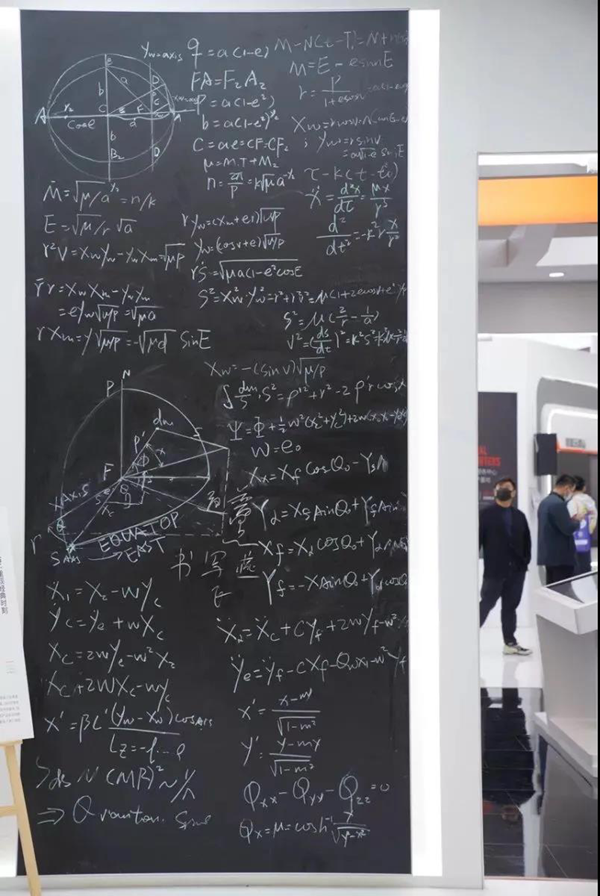 在展廳的一角,歐帝還創造性的呈現了一塊巨大的玻璃黑板,黑板上寫滿了衛星軌道方程計算公式,這是對黑板書寫歷史瞬間的致敬。在歐帝智慧黑板還未出現的年代,科學家用粉筆在黑板書寫,反復的演算、涂寫,探索前沿,是人類智力勞動的美學典范。我們經歷了兩百年的粉筆書寫歷史,這是一種根深蒂固的傳統,粉筆公考和黑板的夢幻組合,就像畫布和顏料之于畫家,這是物質文化的魅力所在。時空輪轉,教室、黑板以及黑板面前的人,都發生了新的變革,但時代潮流中的這股逆流,依然像遙遠天空的星光,動人心魄。