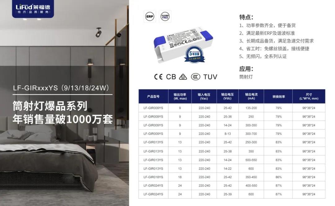 2021年,萊福德大功率事業(yè)部立足現(xiàn)有產(chǎn)品持續(xù)優(yōu)化,解決UFO非隔離電源市場應(yīng)用難題,保持產(chǎn)品領(lǐng)先性。同時積極開拓新領(lǐng)域,為防雨景觀照明市場帶去更多優(yōu)質(zhì)產(chǎn)品。