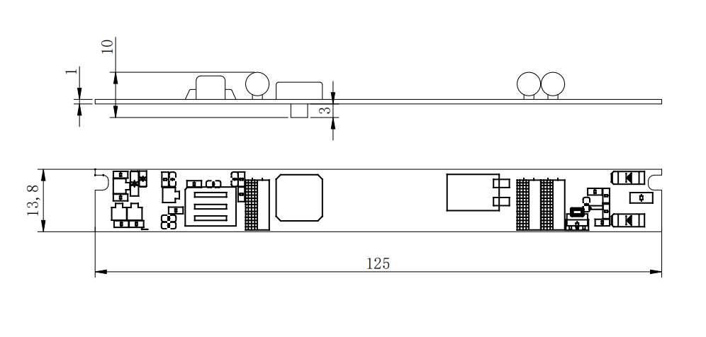 裸板設(shè)計,所有型號統(tǒng)一尺寸,輕薄小巧(L*H*W=125*13.8*10mm),不僅適用于標(biāo)準(zhǔn)STUCCHI外殼,也可滿足其他極窄外殼安裝需求,應(yīng)用更廣泛,備貨更方便。