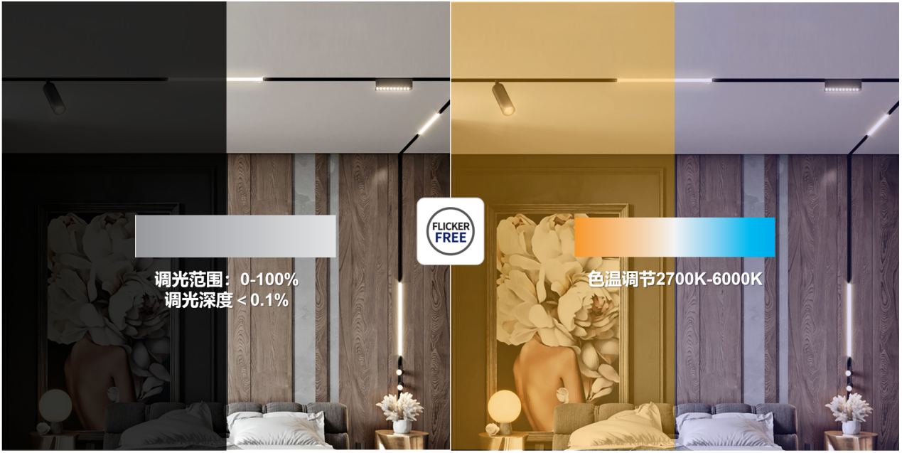 0.1%深度調(diào)光、調(diào)光曲線平滑、調(diào)光全程無頻閃,滿足年輕一代對高端品質(zhì)燈光的需求。