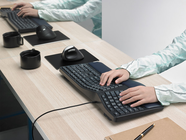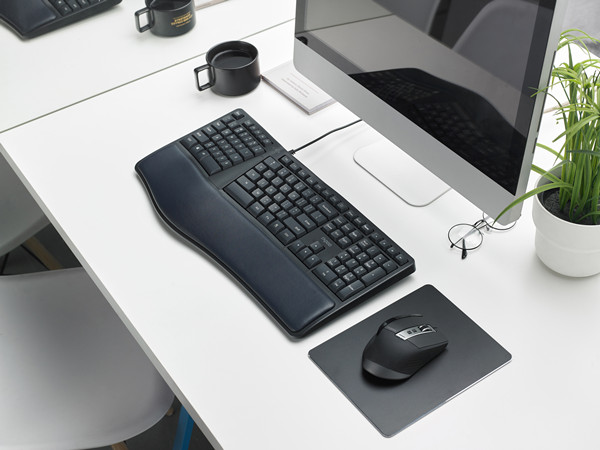 黑調的神奇,傳輸一種摩登極簡主義,輕盈溫柔,外在清冷,卻擁有撫慰人心的力量。為辦公人群深入定制人體工學,在簡單中放松。每一處指尖的彎曲抬落與手腕的自然垂落相糅合,依照垂落的姿勢、彎曲形狀進行鍵帽排置布局、鍵帽弧度設計。分體式設計布局結合黃金角度17°弧形,讓手臂在自然中伸展舒張,大幅度減少手指與手腕勞損,在自然的敲擊體驗中讓輸入體驗不在“因人而異”。