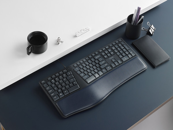 雷柏NK8800人體工學有線鍵盤,以自然而然的貼合融于人與工具、工具與環境的相互見作用,將舒適在辦公生活與活動效率間輕盈穿引,并用材質與設計賦予其歷經時間考驗的穩定持久,讓一觸一發,從未如此由心自然。
