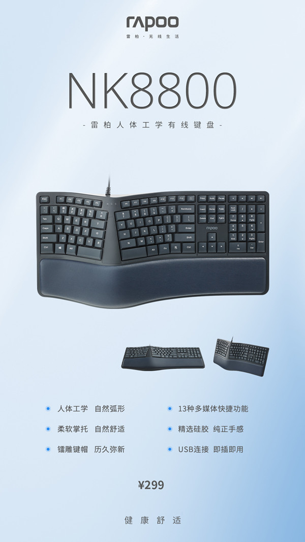 自然弧度自然觸發,雷柏NK8800人體工學有線鍵盤上市