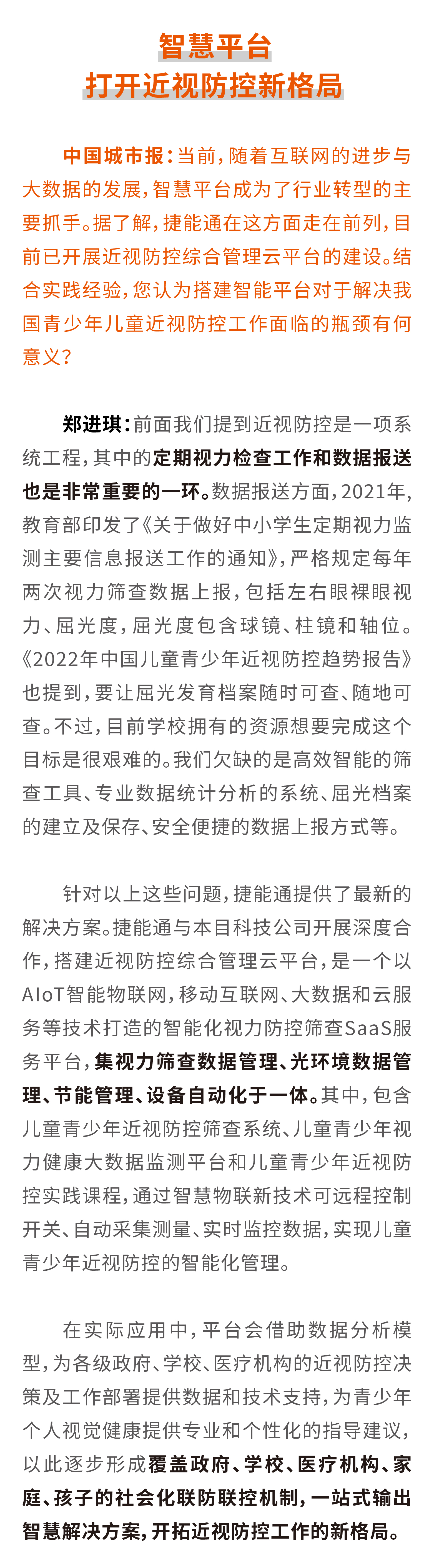 光明護(hù)航成長 教育滿載希望——人民網(wǎng)《中國城市報(bào)》采訪中國教育技術(shù)協(xié)會(huì)標(biāo)準(zhǔn)委員會(huì)專家委員、捷能通董事長鄭進(jìn)琪
