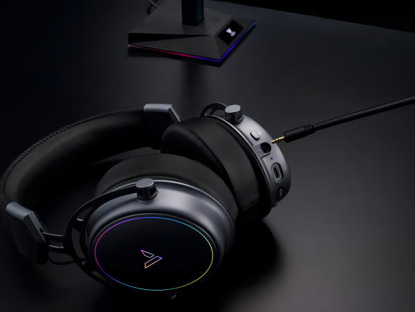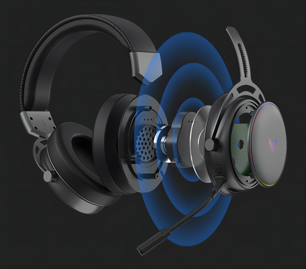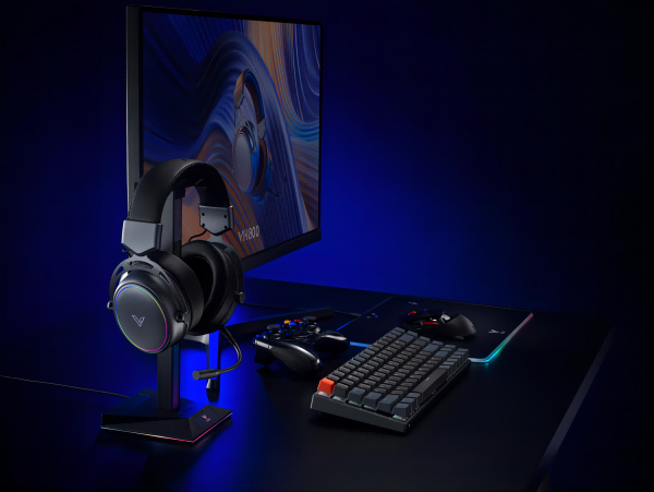 視覺的核心,個性化、先鋒化。VH800游戲耳機用幻彩打破沉悶,耳殼處圍繞幻彩RGB燈效,中間注入游戲V系列DNA,以科技勾勒進階魅力,氛圍燈詮釋游戲樂趣。耳殼邊緣集成音量調節滾輪、背光開關、麥克風開關、電源鍵、模式切換等多功能按鍵,迅速便捷。