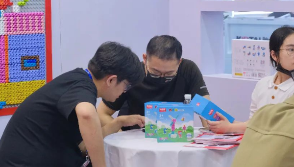 有不少代理商應布魯可教育邀約,遠道而來專程趕到南昌的展會現場,經過布魯可教育的同事講解后,驚嘆于布魯可積木的品質和人工智能啟蒙的理念。還有一些走過路過的幼教屆同仁被會動的智能互動積木、智能識別機器人、智能編程機器人吸引了注意力,從走過路過紛紛前來咨詢詳談。