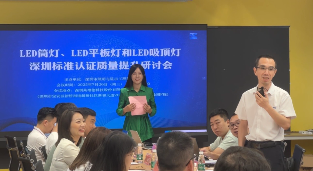 7月26日下午,由深圳市照明與顯示工程行業(yè)協(xié)會主辦,深圳萊福德科技股份有限公司協(xié)辦的深圳標(biāo)準(zhǔn)認(rèn)證質(zhì)量提升研討會在萊福德深圳總部圓滿落幕。