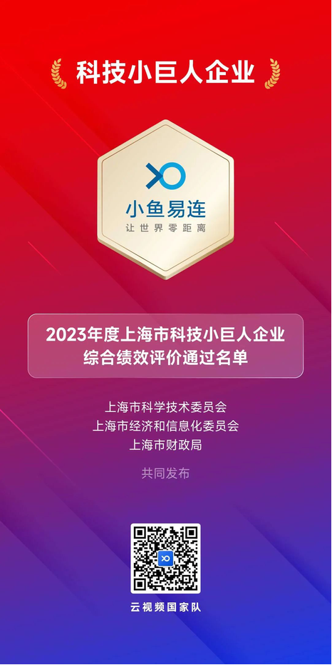 近期,上海市科學技術委員會、上海市經濟和信息化委員會、上海市財政局公布了2023年度上海市科技小巨人企業綜合績效評價通過名單,小魚易連實力入選,榮膺上海市科技小巨人企業稱號。