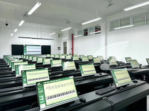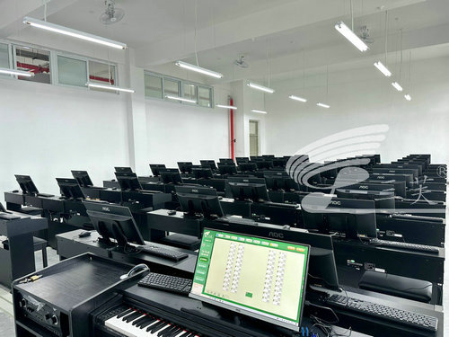 在智慧鋼琴教室建設上,從江縣職業技術學校選擇了“三芙”牌ZHCX-21型智慧鋼琴系統!叭健敝腔垆撉俳淌沂且浴爸髁髌放茢荡a鋼琴+專業高清護眼一體電腦+三芙專業管理平臺和專用教學課件”組合而成,呈現為“專業的樂器+專業的教學應用管理”。三芙ZHCX-21慧數碼鋼琴教室通過音頻交互教學、鋼琴樂譜教學,鋼琴鍵盤互動,鋼琴節奏培養、鋼琴娛樂練習、鋼琴彈唱教學、鋼琴指法教學、課件庫與教材、課堂遠程控制、輔助鋼琴教學等十余個教學模塊完成鋼琴集體課學習。通過對該教室的使用,學生可以快速掌握鋼琴的基本彈奏技能,并可以學習一定的“教學技巧”。