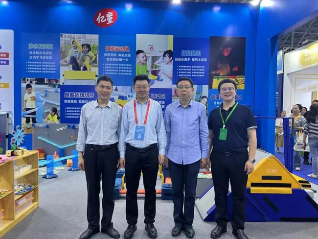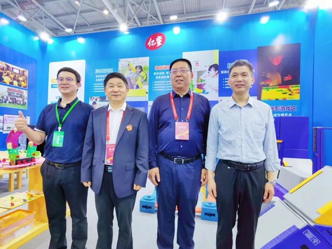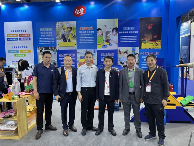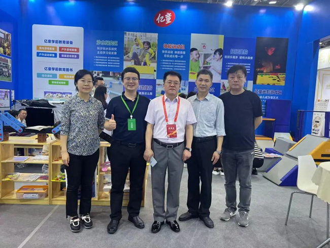 在交流中,領導們對億童多年來初心不改,潛心服務幼教的精神給予贊許,對億童緊跟政策方向,研發推出一系列深受園所和幼兒喜愛的裝備材料表示認可。