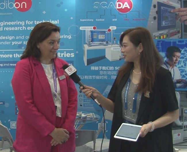 展會(huì)現(xiàn)場(chǎng),edibon CEO Myriam Bonilla接受本站采訪。