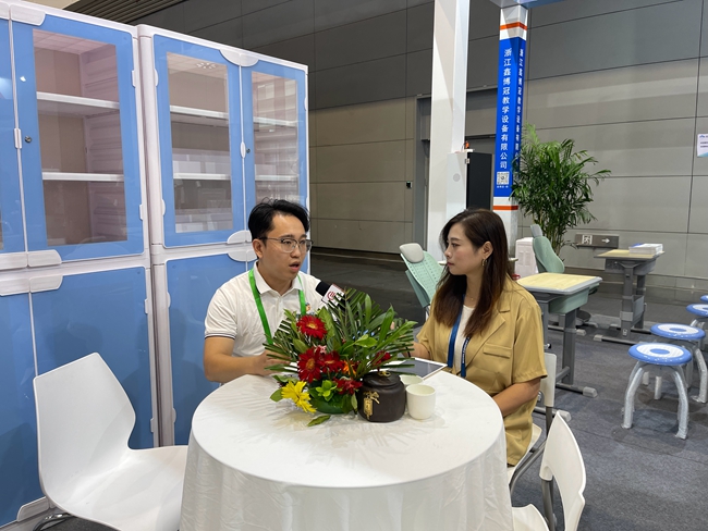 展會現場,浙江鑫博冠教學設備有限公司項目經理胡思宇接受本站采訪。