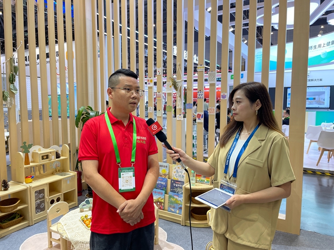 展會現場,浙江布兒森教學設備有限公司銷售經理徐挺接受本站采訪。