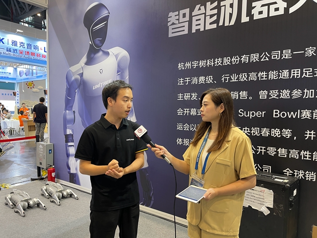 展會現場,杭州宇樹科技股份有限公司銷售經理吳開程接受本站采訪。