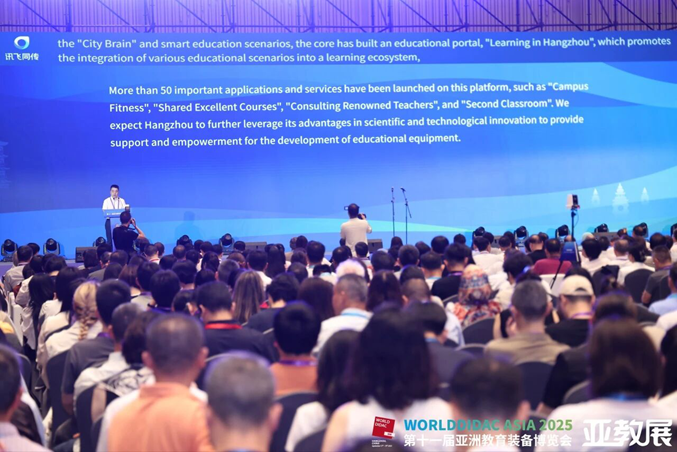 展會第一天上午,第十一屆亞洲教育裝備博覽會開幕式在杭州大會展中心隆重舉行,現場匯聚來自國內外教育主管部門、行業協會、科研機構及領軍企業的500余位嘉賓,共同見證這一亞洲教育裝備領域盛會的啟幕。開幕式后,博覽會進入全面展示與交流階段。