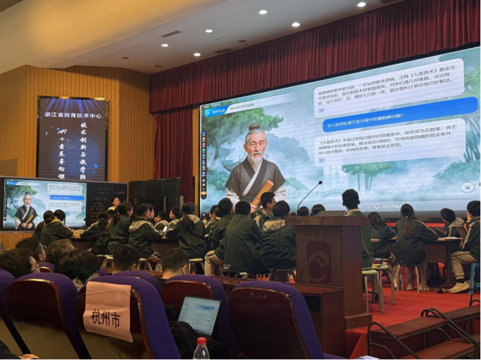 在展會之外,杭州市錢學森學校的數學課堂上,AI黑板讓《九章算術》里的數學家劉徽“破壁而出”,他以虛擬形象生動闡釋“方程術”與現代消元法的關聯,在與學生的問答互動中,算籌的古老智慧與當代數學思維碰撞出火花。抽象的公式不再是冰冷的符號,而是通過“跨時空對話”變得觸手可及,讓學生直觀感受數學思想的傳承脈絡。