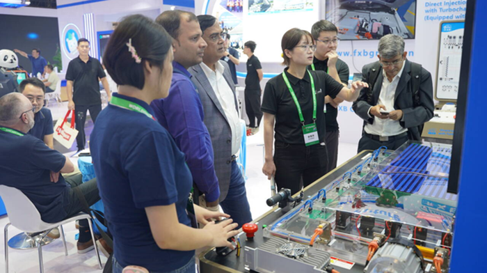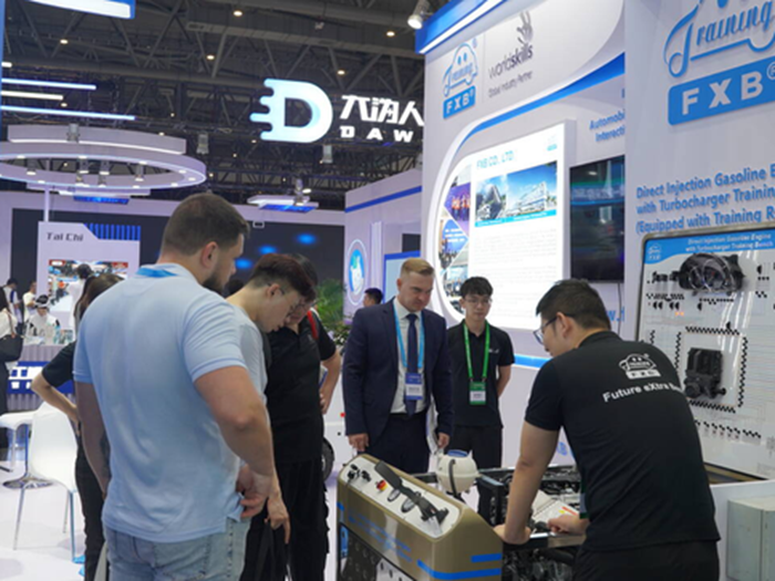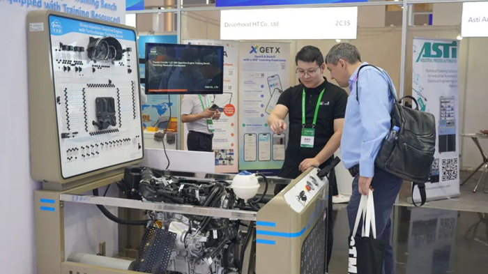風向標展區重點展示了新一代動力電池及電驅動實訓平臺、多傳感器融合的智能網聯教學系統、沉浸式的虛擬仿真實訓軟件,以及融合AI診斷的傳統動力系統智能化教改方案。這些創新技術全面體現了風向標“軟硬結合、虛實一體”的先進教學理念,不僅響應了展會“技術助力教育可持續發展”的主題,更致力于為國際職教領域輸出高水平的中國技術方案與智慧實踐。
