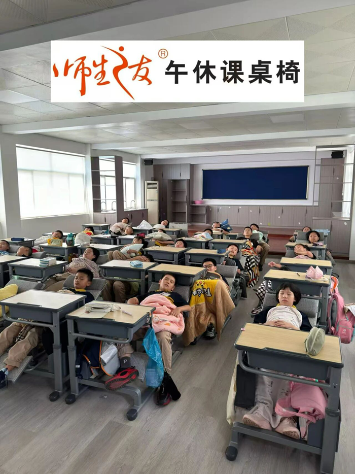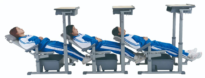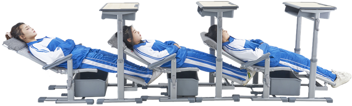 公司午休課桌椅產品,課桌椅排距短,后仰角度大(150度),教室里擺的下,午休時躺得舒服。課椅座面采用特制的PE藤質材料編織,透氣性好,還具備良好的承托彈性,久坐不易疲勞,提升睡眠質量。各種款式齊全,操作便捷快速 ,讓學生午休更舒適。