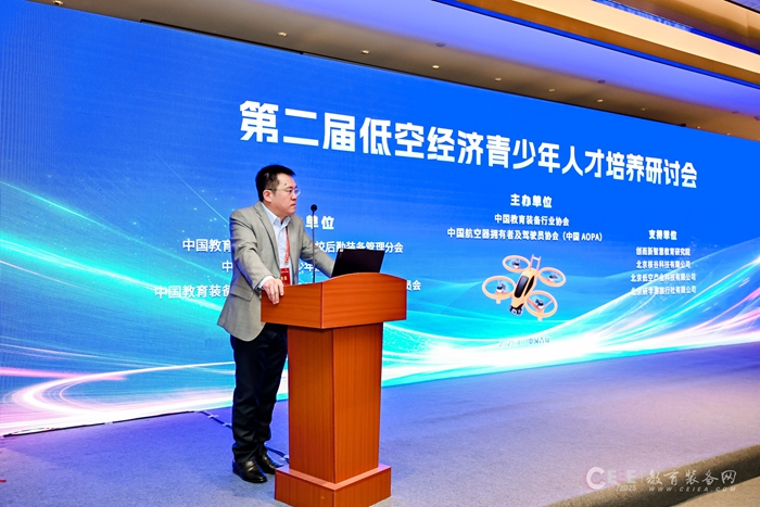 10月24日,在第86屆中國教育裝備展示會期間,由中國教育裝備行業協會、中國航空器擁有者及駕駛員協會(中國AOPA)主辦的第二屆低空經濟青少年人才培養研討會在青島世博城國際展覽中心舉辦。中國教育裝備行業協會專家委員會主任王富,中國航空器擁有者及駕駛員協會秘書長陳國華,山東省教育發展服務中心副主任孫培東,山東省青島市教育局總督學李曉元等領導出席本次會議。