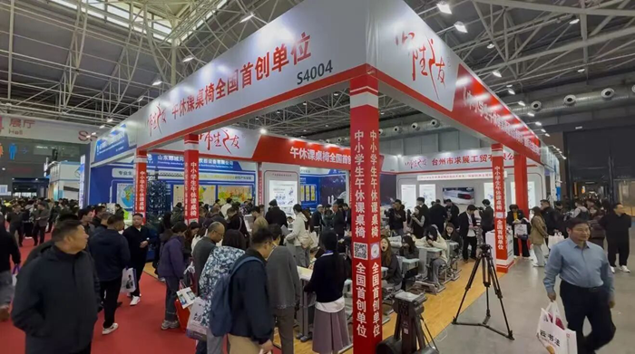 回顧現場,耳畔依舊是人聲鼎沸,參展人流穿梭不息。盡管只有短短三天時間,但是師生之友的展臺一直是人氣集結地,人潮涌涌,熱火朝天。接待了來自五湖四海的朋友前來參觀、交流。臺州市求展工貿有限公司董事長楊益民有幸接受到記者的采訪,讓我們更加深入的了解到師生之友午休課桌椅的研發理念與創新亮點。
