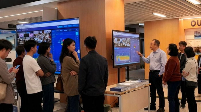 在大會展示現場,現代中慶展區AI教研與AI巡課兩大應用場景吸引了與會嘉賓駐足和交流。