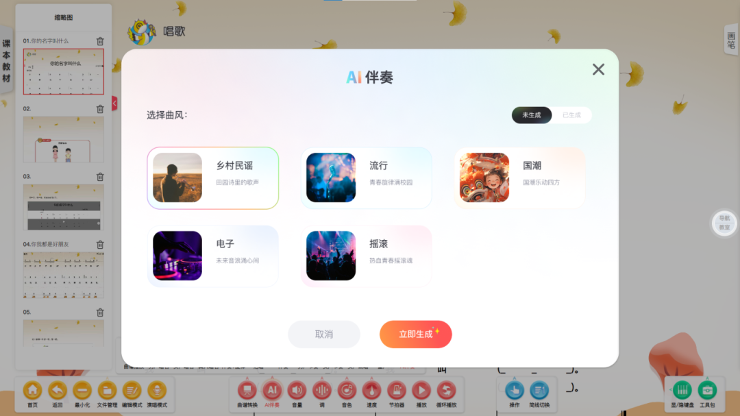 在培訓(xùn)過(guò)程中,劉浩然主任還給教師們分享了金三惠數(shù)字音樂教學(xué)軟件的AI工具,如AI創(chuàng)編、AI伴奏、AI轉(zhuǎn)譜等,激發(fā)了教師們的創(chuàng)新思維,為數(shù)字化課程的設(shè)計(jì)提供了豐富的素材和靈感。