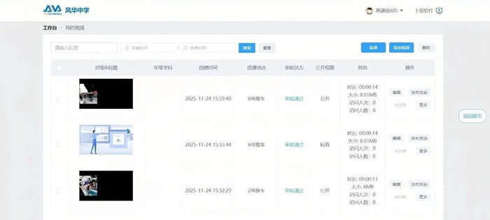通過風華中學自研的“互動筆記電子平臺”,教師可在線審閱學生提交的實驗視頻。直觀的視頻記錄讓教師能夠清晰了解每位學生的實驗思路與真實操作過程,實現更精準的指導。