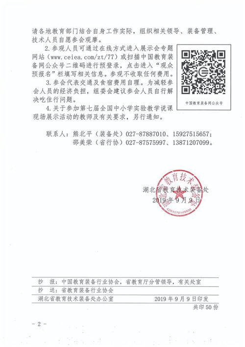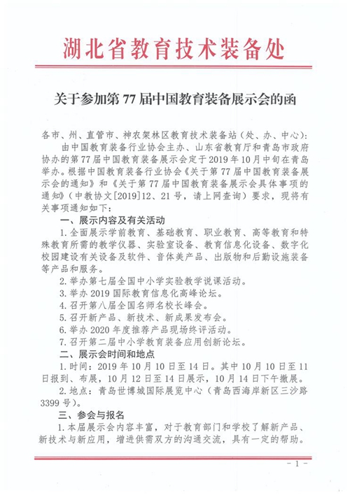 湖北省教育技術裝備處關于參加第77屆中國教育裝備展示會的函 |